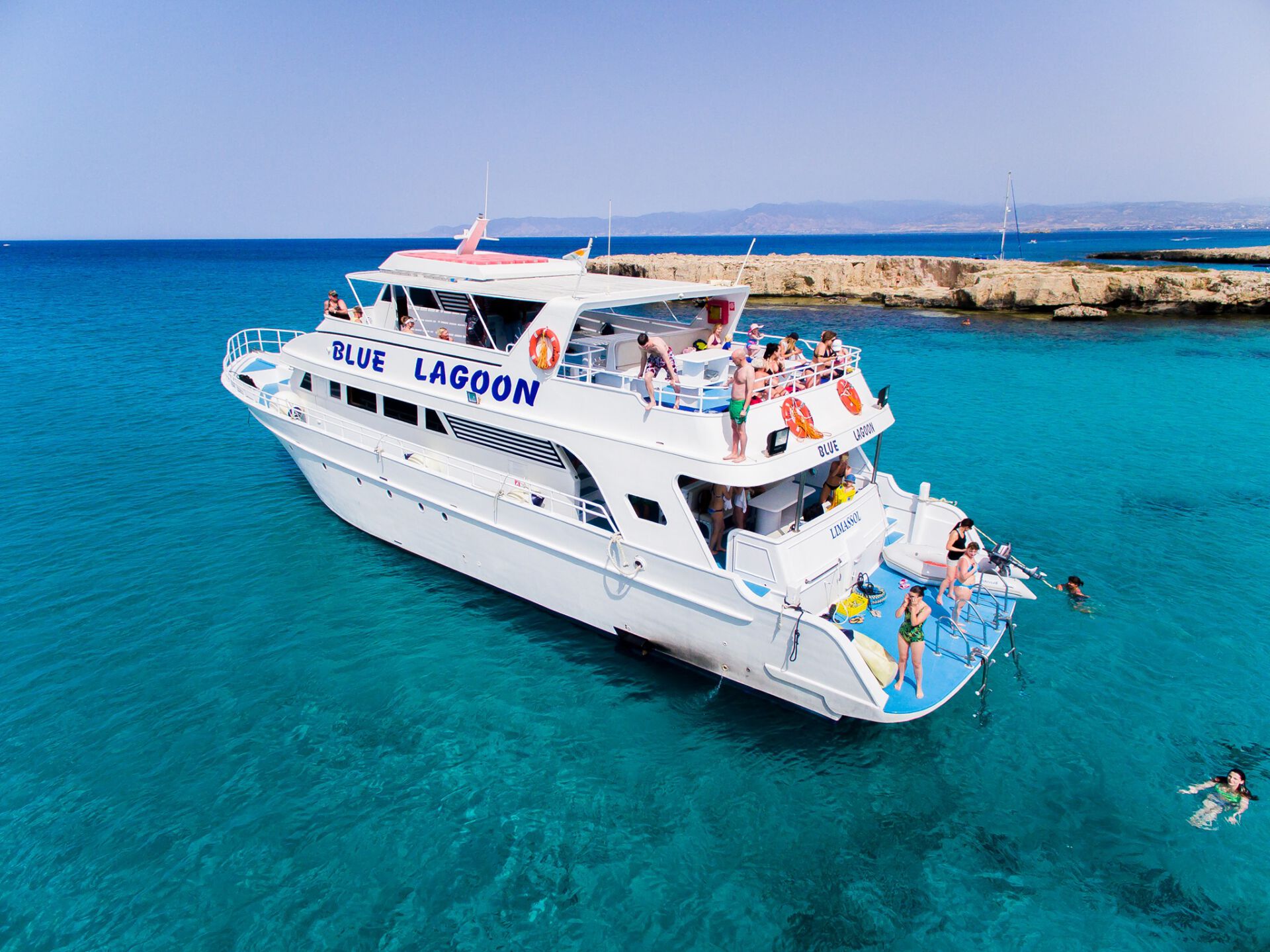 09:40 - 10:00 zbiórka uczestników na keji przy statku BLUE LAGOON II (największy i najlepszy ze zjeżdżalnią) w porcie w Latchi (w pobliżu miejscowości Polis)